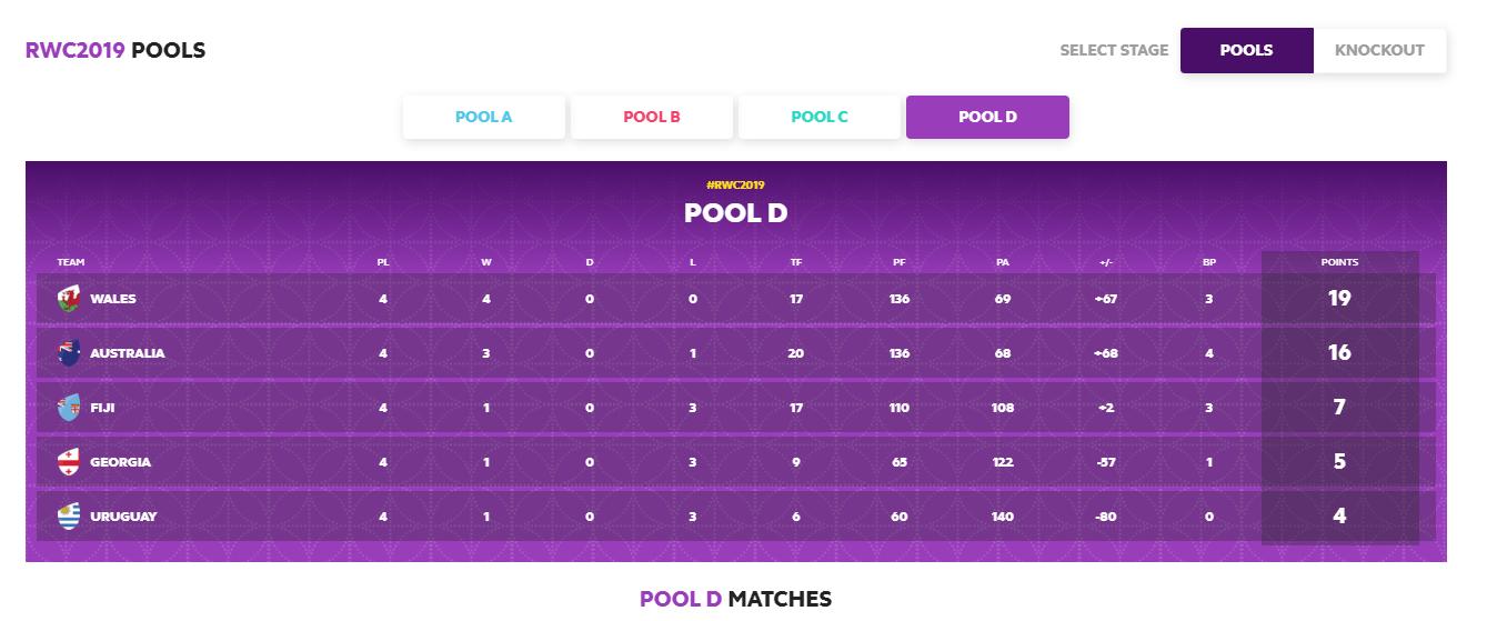 Rwc Pool Standings